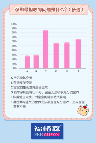 此前,為了讓準媽媽們對孕嬰營養(yǎng)知識有更深入的了解,福格森聯(lián)手辣媽幫等機構,對5321名準媽媽或已生育的年輕媽媽進行問卷調(diào)查。問卷涉及孕期營養(yǎng)補充,營養(yǎng)補充方式,寶寶發(fā)育關鍵期等方面問題。
